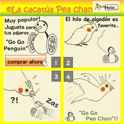 Es la caricatura sobre la cacatúa ninfa Pea Chan.